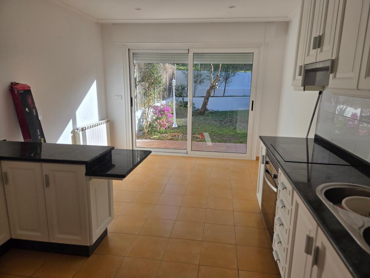 Primera planta : amplia entrada con un armario empotrado ,seguido de cocina completa con electrodomésticos y salida al jardin y un amplio salón comedor con chimenea y salida al jardín y también un baño de cortesía.